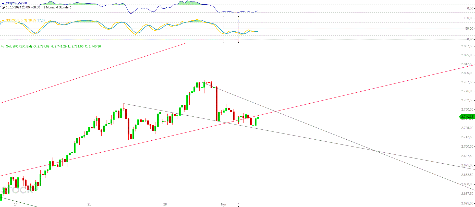 Bei der Unsicherheit vor der Wahl ist die kleine Korrektur bei Gold und Silber fast verwunderlich. Die Marketmaker denken vermutlich, dass sie nach der Wahl stur in eine Richtung gehen können, nur was ist, wenn die Wahl nicht entschieden wird, wegen offenem Wahlbetrug oder einem Patt anderer Art. Dann hätten wir ein Interregnum von ... Gold vermutlich. Nach der Wahl dürfte in beiden Programmen stehen, Geld zu drucken, bis es wieder gut geht. Auch das könnte für die EM von Vorteil sein. Erst kurz nach Amtsantritt dürfte Ernüchterung eintreten, denn dann muss die Schuldengrenze neu verhandelt werden. Da könnte der Dollar wieder etwas an Wert gewinnen.