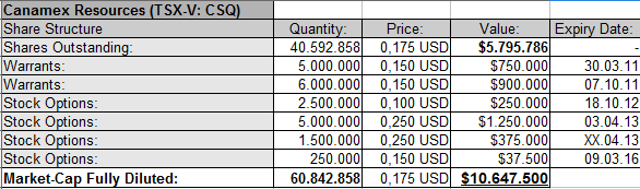 Canamex Resources Corp. (the "Company") (TSX VENTURE:CSQ) announces that it has closed the private placement announced in a News Release dated March 10, 2011. On April 1, 2011 the Company received acceptance from the TSX Venture Exchange to close the private placement.