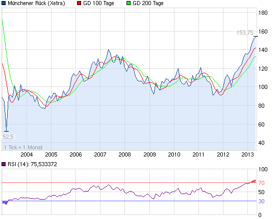 Allerdings muss bzw. sollte man auch auf die anderen Bedingungen am Markt reagiegen. 100% Kursanstieg in eineinhalb Jahren sind bei einem Bluechip gewaltig. Doch ist ein Korrektur nach einem so langen ununterbrochenem Anstieg langsam überfällig. Auch die Eurokrise kündigt sich langsam wieder an.