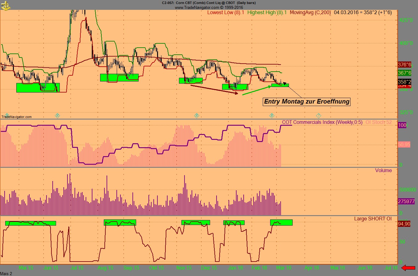 Nun Chart 2: Was waere passiert haetten wir nur den Indikator befolg wenn auch die Commercials bearisch sind?