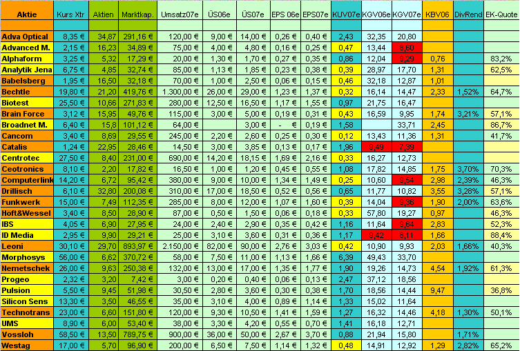 Kenne eigentlich keine Aktie mehr, die bei KBV unter 1,5 auch ein KGV unter 5 hat, schon gar nicht bei dem starken Wachstum der letzten 3 Jahre. Dazu eine sehr gute EK-Quote. Aber Carthago ist halt zu unbekannt und die Aktie zu illiquide, weshalb sich wohl kaum jemand für längere Zeit reintraut. Kann ich sogar verstehen. Hab bisher auch meistens nur getradet. Längste Zeit war vor 12-18 Monaten als ich mal knapp 4 Monate investiert war.