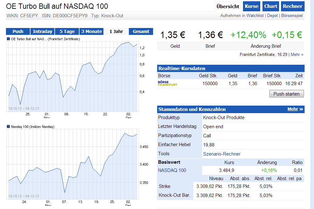 Sollte es jetzt noch zu einer Jahresendrally in dem Gesamtmarkt kommen wird man mit dem CALL den ich empfohlen habe eine wahnsinns Performence hinlegen.