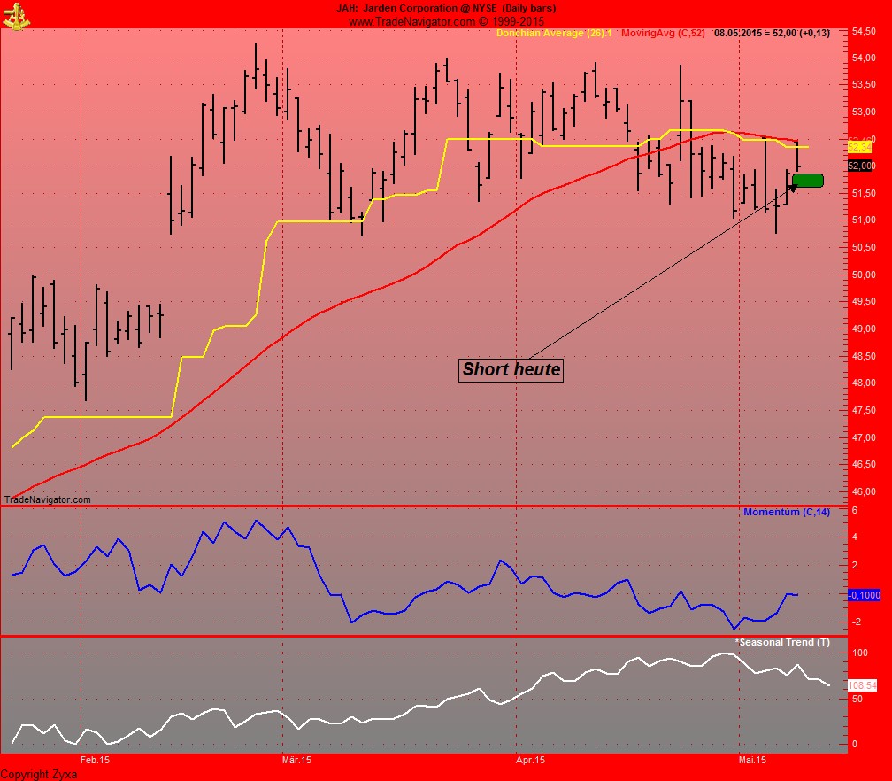 Ich werd wohl ersteres nehmen und den SL beim Tageshoch vom Freitag platzieren. TP wuerde ich so ca. bei 6% im Gewinn setzten, da waere in etwa der 52 MovAVG