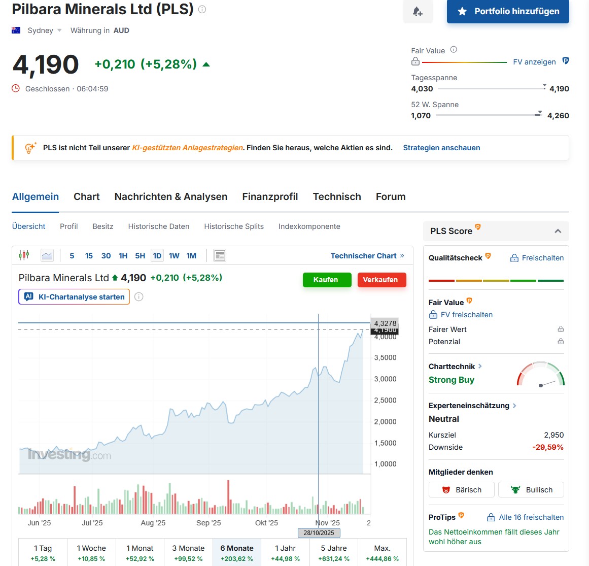 Natürlich hoffe ich jetzt noch auf eine Weihnachts-Rally und ich wünsche mir vom Santa Claus, dass wir bis Ende Jahr, die AUD 4.50 und bis März 2026, den Altzeithoch erreichen... bzw., übertreffen werden...
