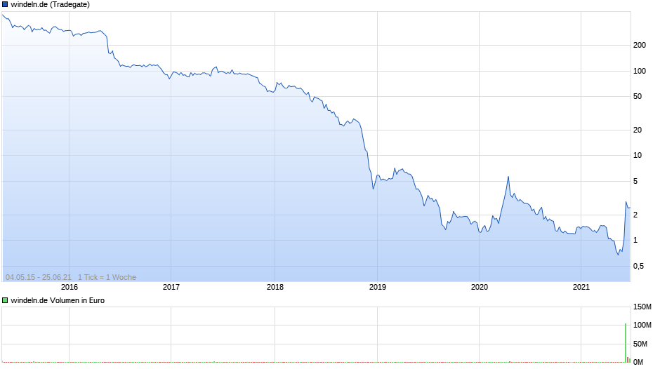 Dass dem Unternehmen die Situation selbst nicht geheuer war, drückt sich im Bezugspreis aus. 1,30 Euro will man je neuer windeln.de Aktie haben - ein Preis, der einerseits weit unter den jüngsten Hochs mit XETRA-Kursen knapp unter der 6-Euro-Marke liegt, der andererseits noch Anfang Juni mit Pennystockpreisen der windeln.de Aktie an der Börse niemals durchsetzbar gewesen wäre. Aktuell notiert das Papier bei 2,16 Euro und die Umsätze in der Aktie aus den letzten Tagen zeigen, dass sich die teils wilde Situation nur zum Teil beruhigt hat.