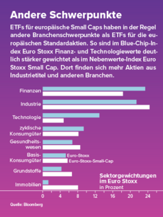 Wer das Potenzial der europäischen Small- und Midcaps nutzen will, kann mit spezialisierten ETFs arbeiten. Zur Verfügung stehen ETFs auf den Nebenwerte-Index von Stoxx sowie auf das Pendant von MSCI.