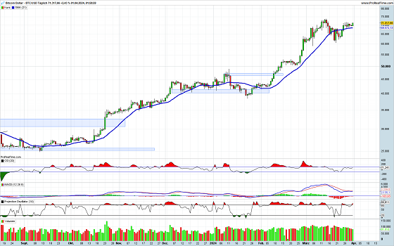 Der Termin für das sogenannte „Halving“, welches nur ca. alle vier Jahre vorkommt, steht nun unmittelbar bevor. Ob es sich nach diesem Termin beim Bitcoin so abspielt wie bei den letzten vier Halvings, als es in den Folgemonaten zu exorbitanten Kurssteigerungen kam, bleibt abzuwarten. Derzeit tritt die Kryptowährung jedenfalls auf der Stelle, so als würden die Marktteilnehmer abwarten, was als nächstes passiert. Ein solches Verhalten ist beim Bitcoin schön öfters zu beobachten gewesen. Nicht selten, war anschließend ein Schub nach oben zu verzeichnen. Dies ist allerdings nicht immer zu erwarten, weshalb ein Anstieg nicht antizipiert werden sollte.
