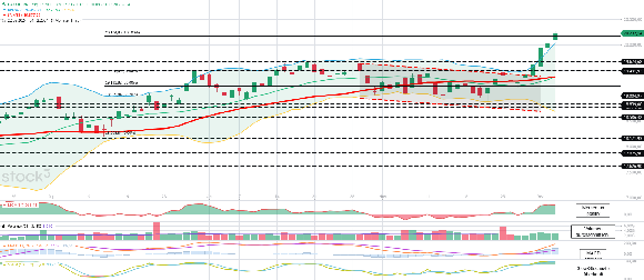 DAX mit dem dritten Allzeithoch in Folge: Der deutsche Leitindex konnte gestern seinen charttechnischen Höhenflug nach oben weiter ausbauen. Ein neues Allzeithoch bei 20.261 Zählern war bereits das dritte Allzeithoch in Folge – allesamt mittels einer grünen Tageskerze. Die nächste Unterstützung liegt nun schon bei 19.926 Punkten. Die charttechnischen Supports bei 19.675 sowie 19.492 fungieren als weitere Stützen nach unten. Die Vorzeichen, dass der deutsche Leitindex in eine Jahresendrally münden könnte, haben sich mehr als bewahrheitet. Sowohl das Obere Bollinger-Band als auch das Mittlere Bollinger-Band tendieren auch am heutigen Donnerstag schon wieder nach oben. Dem nun bereits dreimaligem Überhandeln des Oberen Bollinger-Bandes in Folge könnten demnächst leichte Gewinnmitnahmen folgen.