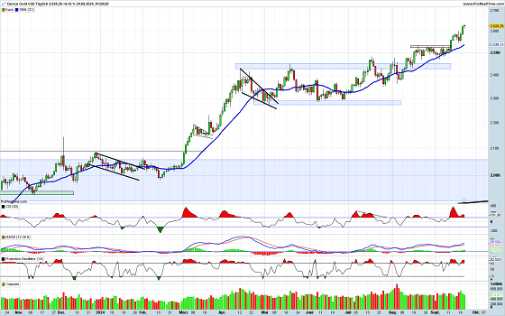 Gold läuft von Rekordhoch zu Rekordhoch. Korrekturbewegungen fallen immer geringer aus. Somit stellt sich die Frage, ob das Edelmetall vor einer größeren Korrektur steht. Diese könnte mindestens bis in den Bereich von 2.500 USD führen. Allerdings dürfte der übergeordnete Aufwärtstrend kaum zur Disposition stehen. Korrekturen gehören zu stabilen Aufwärtstrends. Gold wird hier keine Ausnahme machen.